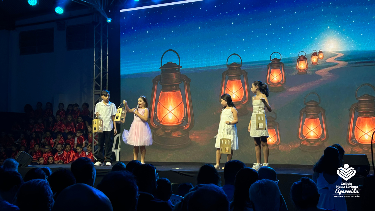 Com lamparinas nas mãos, danças simbólicas, gestos suaves e leituras breves dos Salmos, os alunos conduziram o público por um caminho espiritual marcado por quatro palavras-chave: espera, escuta, fé e amor. Caminhos simples, mas profundamente cristãos e possíveis de serem vividos desde a infância.
